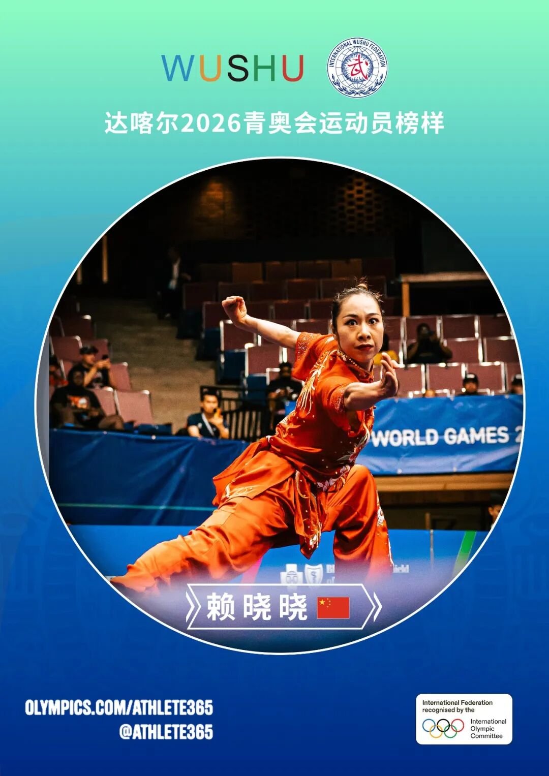 近日,国际奥委会(IOC)正式公布达喀尔2026年青奥会首批运动员榜样名单,中国武术名将、国际武联运动员委员会主任、我校体育学院青年教师赖晓晓成功入选,成为武术项目唯一代表。青奥会“运动员榜样计划”自2010年新加坡首届青年奥运会设立以来,已成为每届青奥会的核心项目,旨在为参赛青年运动员搭建向高水平奥运选手学习交流的平台。赖晓晓作为中国武术套路运动员,主攻长拳、剑术、枪术,曾荣获世界武术锦标赛、世界运动会、杭州亚运会等多项国际顶级赛事冠军,...