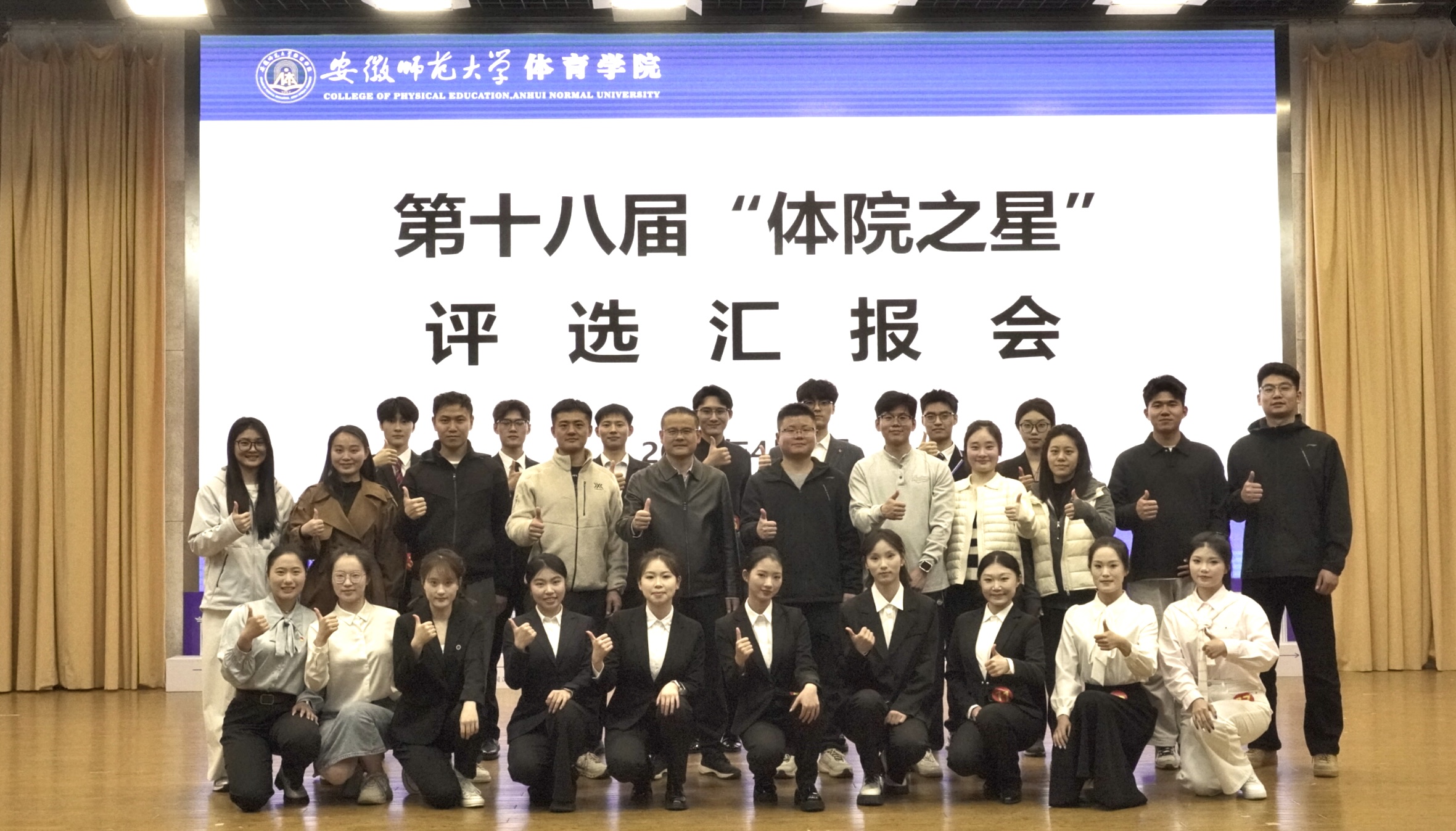 为充分发挥青年典型模范带头作用,引领广大体院学子踔厉奋发、勇毅前行,4月8日晚,体育学院在理科大楼报告厅举办第十八届“体院之星”十佳大学生评选汇报会。学院党委副书记付勇、本科生专兼职辅导员出席并担任评委,全体2025级同学到场观摩学习。经个人申报、班级推荐、材料审核,17名综合素质突出的同学最终进入现场汇报环节。汇报中,同学们围绕道德示范、志愿服务、学风创优、体育锻炼、社会实践等主题,结合自身成长经历,讲述奋斗故事,...