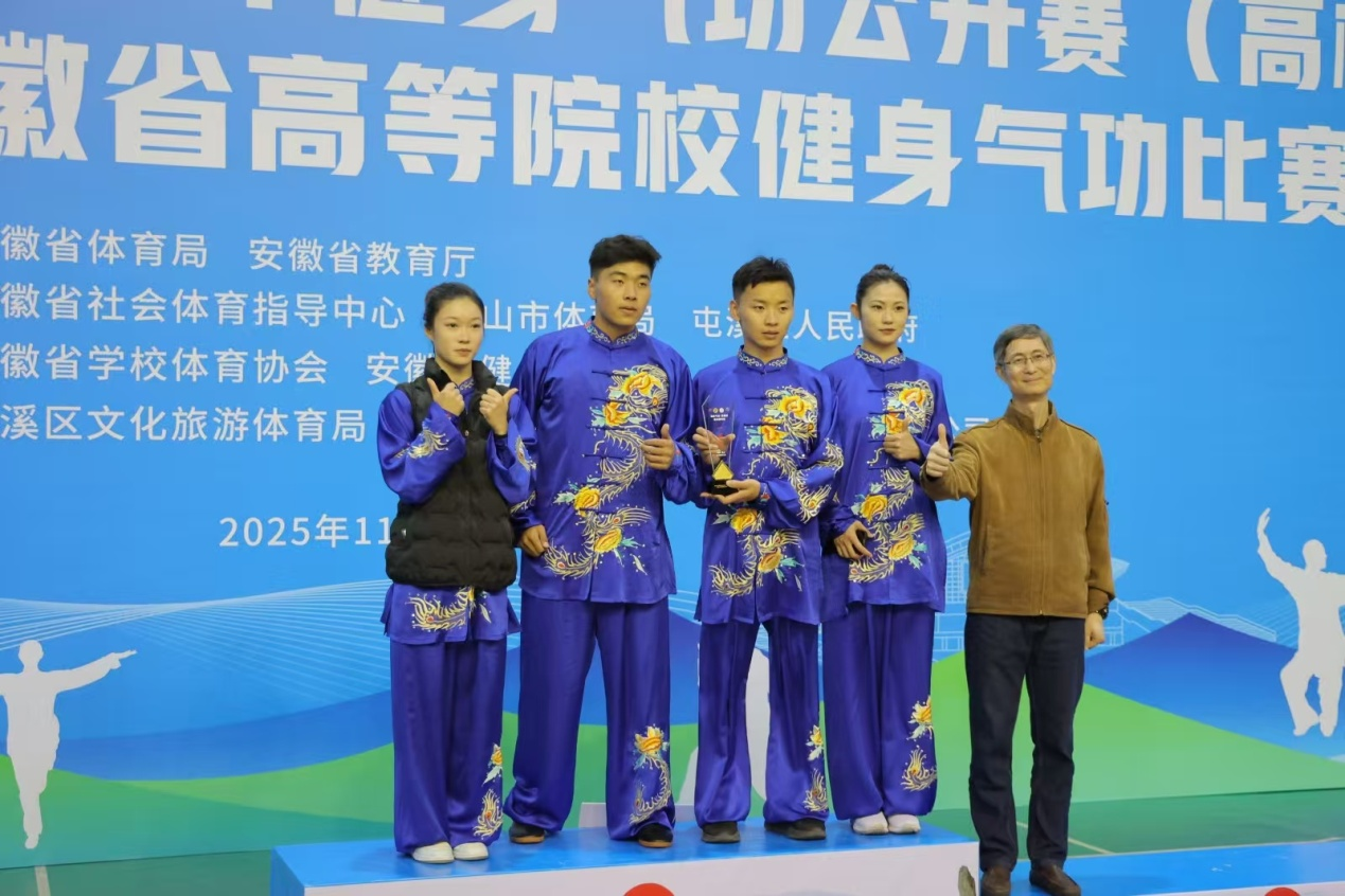 本网讯(体育学院)11月15日至16日,由安徽省体育局、安徽省教育厅共同主办的2025年安徽省青少年健身气功公开赛(高校组)暨第二届安徽省高等院校健身气功比赛在黄山市体育馆成功举办。本次大赛汇聚了来自全省20所高校的47支代表队、近300名运动员同场竞技。