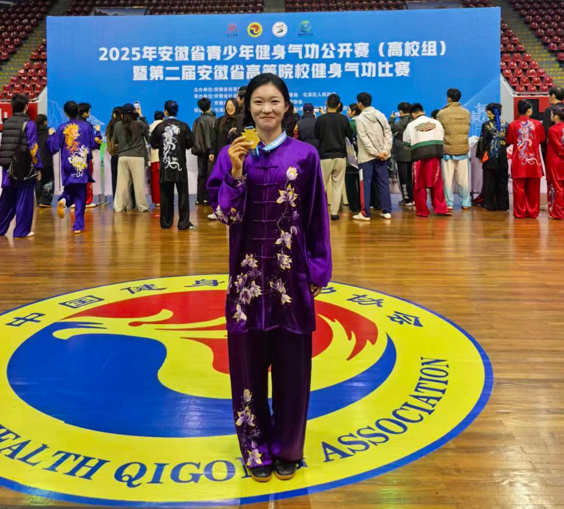 经过两天的激烈角逐,由我校休闲体育专业四名学生组成的安徽师范大学(丙组),在主教练蒋莹老师和教练员王井洲老师的悉心指导下,发挥出色,斩获多项佳绩。在集体项目中,队员们参赛的“易筋经”与“八段锦”均荣获一等奖;个人项目方面,24级休闲体育专业窦雅雯同学摘得“易筋经”金牌,23级专硕张琪同学荣获“大舞”银牌,24级休闲体育专业王子越同学获得“八段锦”铜牌,23级休闲体育专业杨烁婷同学获得“八段锦”二等奖。此外,张琪同学还获评“道德风尚奖”,充分展现了我校学子优异的竞技水平和良好的精神风貌。