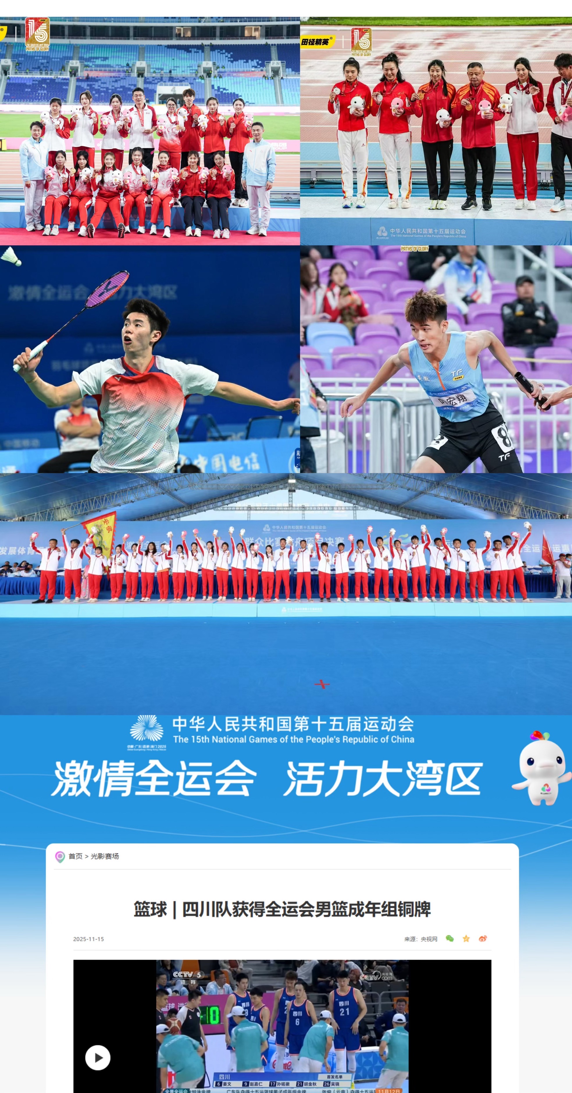 中华人民共和国第十五届运动会于2025年11月9日至21日在广东、香港和澳门举行。赛事涉及群众赛事(23个大项,166个小项)竞技体育(34个大项,419个小项)两个模块,办赛规模对标奥运会。我校学子发扬“厚德、重教、博学、笃行”的校训精神,不畏强手,奋勇拼搏,在竞技赛场与群众赛事中多点开花,共斩获2枚金牌、3枚银牌、7枚铜牌。