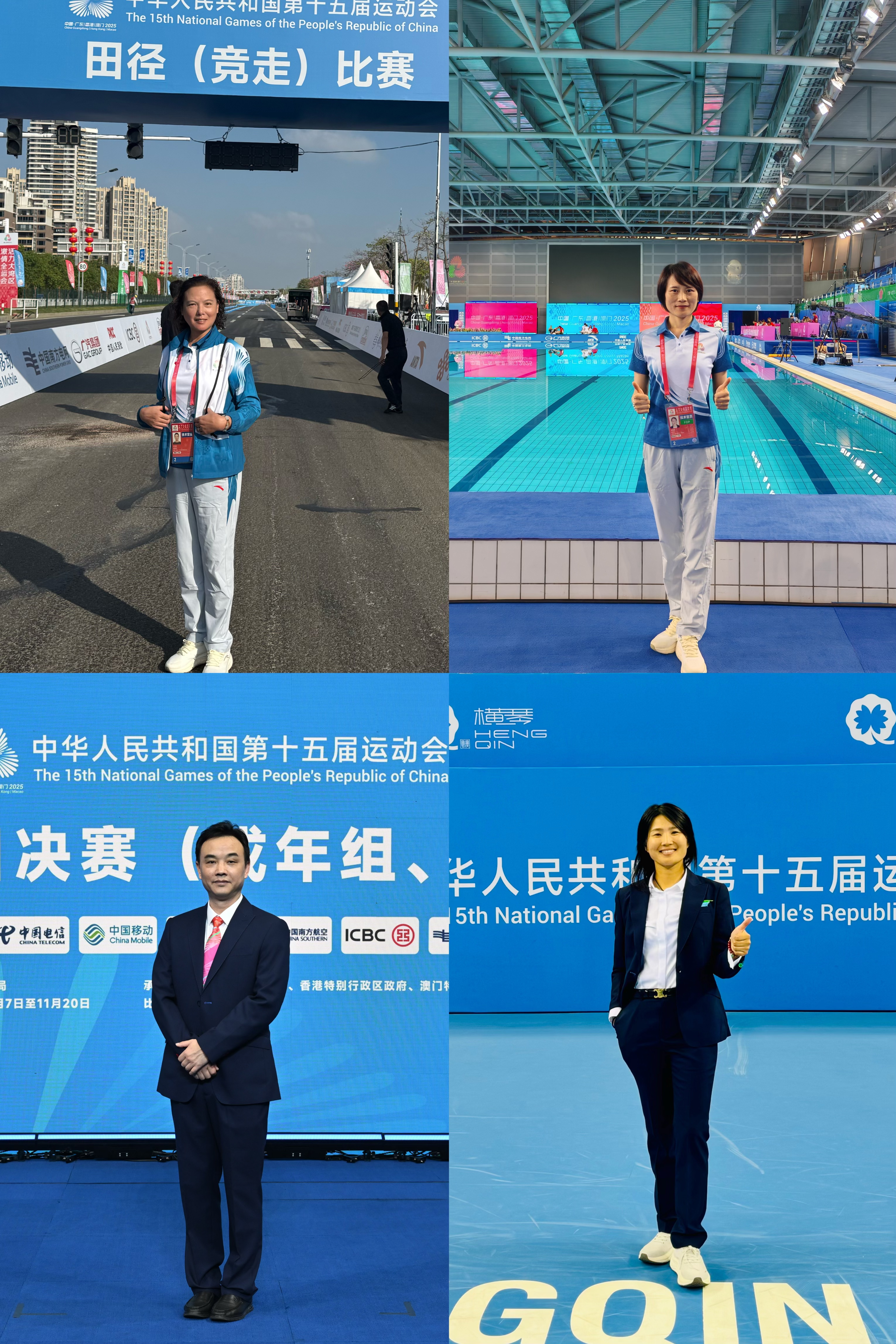 体育学院4名教工李立群、陈建霞、易明兵、孙永梅分别执裁田径、花样游泳、羽毛球、网球项目;同时,我校多名校友执裁于第十五届全运会多类项目。