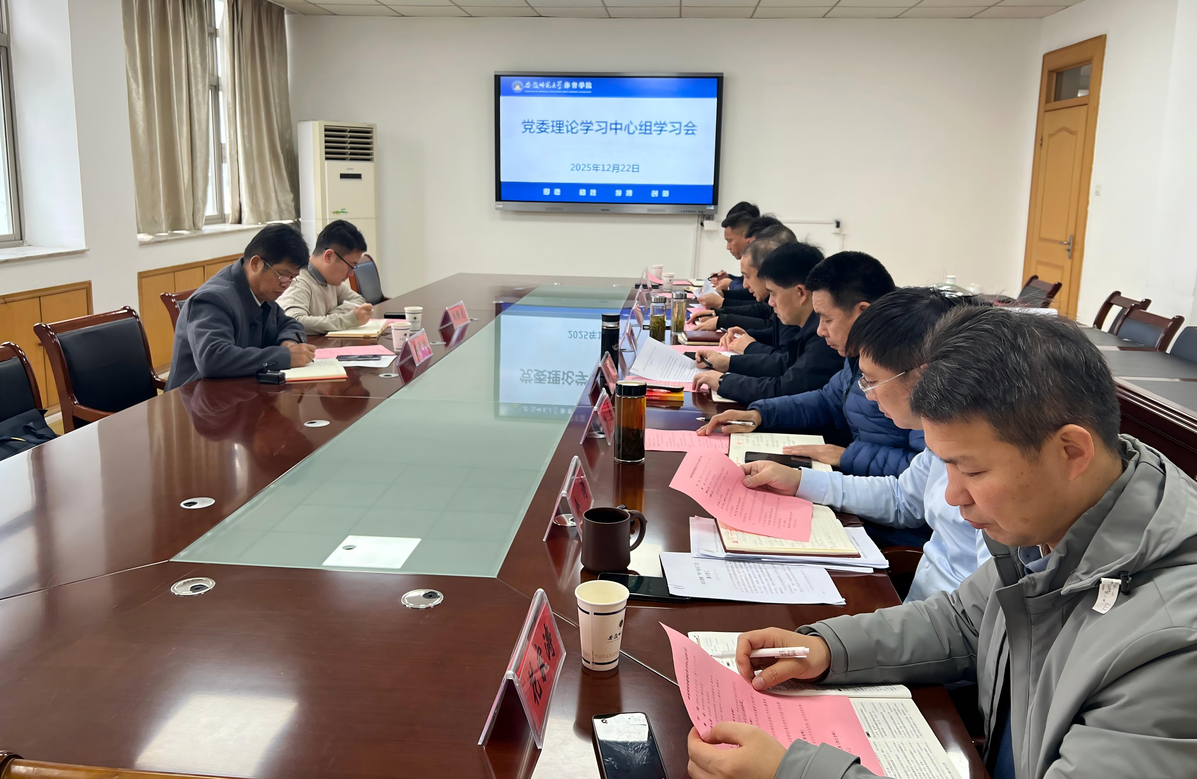 12月22日上午,体育学院党委理论学习中心组在学院三楼会议室举行集体学习会。中心组全体成员参加,生命科学学院正处级组织员蒋学波、校党委宣传部副部长杨穆龙列席,学院党委书记黄德春主持。