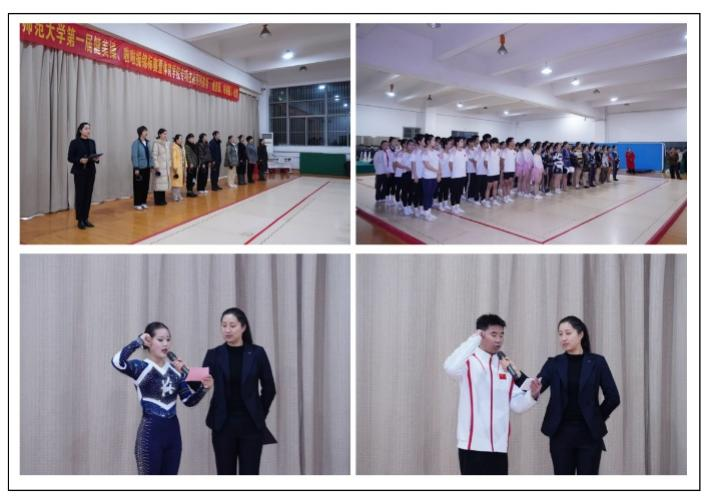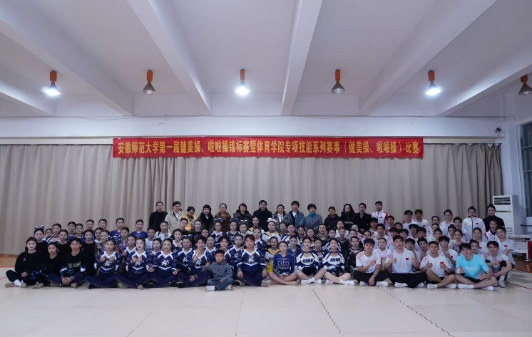 为深入贯彻《深化新时代教育评价改革总体方案》精神,落实新时代学校体育工作要求,2025年12月21日晚,安徽师范大学体育学院在北体育馆成功举办第一届健美操、啦啦操锦标赛暨专项技能系列赛事。本次活动既是面向全校的专业竞技交流,也是2025级本科生健美操啦啦操课程“以赛代考”的期末教学展演,标志着体育教育专业(健美操啦啦操方向)招生后的首次专业活动正式落地。体育学院教学副院长岳建军及相关专业教师到场指导。