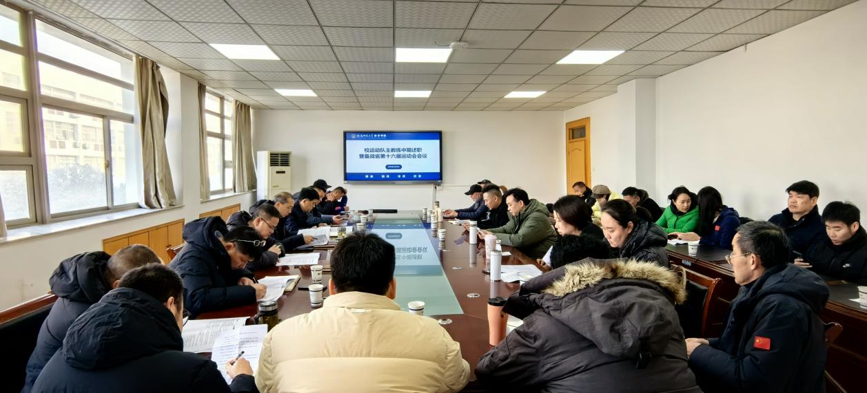 为系统总结各运动队前期训练与竞赛成效,全面部署安徽省第十六届运动会备战攻坚工作,1月21日上午,校体委在体育学院三楼会议室召开运动队主教练中期述职暨备战省第十六届运动会专题会议。校体委常务副主任、体育学院院长金涛主持会议,体育学院党委书记黄德春等学院领导,40余支运动队的27名主教练及相关工作人员参加会议。