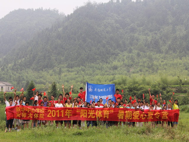 一缕灿烂的阳光驱走了清晨时的阴霾。7月10日上午,体育学院赴黄山“阳光体育”夏令营团队的志愿者在新华中心学校操场上开展了一场以“奔跑在阳光下”为主题的趣味运动会。支教队伍精心策划了包括青年先锋队、群龙戏珠、贴烧饼、画鼻子等6个游戏项目,在老师的指导下,同学们积极参与,在收获运动乐趣的同时,也锻炼了他们的毅力和团队合作精神。