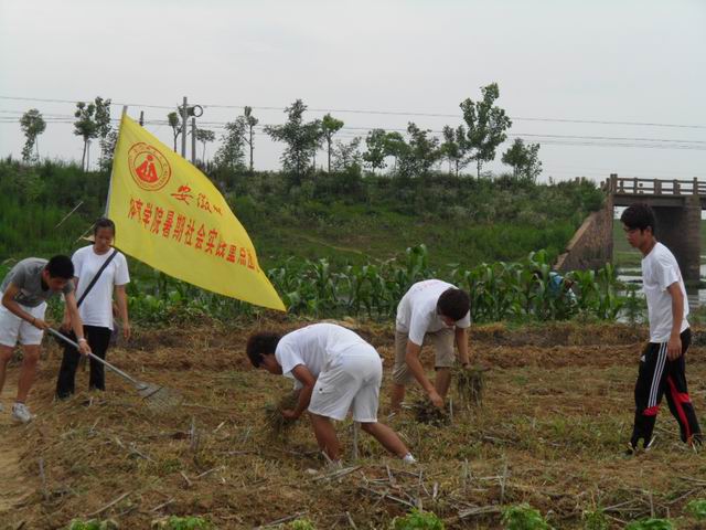 支队在结束上午的教学后,十二点开始由队长将队员分成四支调研分队,分别前往枞阳,麒麟,浮山,钱桥四点开展调研。队员针对农民这一特殊群体,在调研地点进行针对性调研。队员们通过走访商家,访问路人等方式,向群众表明来意后,细心向调研对象讲解调研目的、调研内容,在群众彻底了解并理解活动目的后,请群众完成事先已设计好的调查问卷。调查问卷的基本宗旨是为了解现阶段农民阶层的体育健身普及状况,以及他们的日常体育健身活动的展开方式等。历时四个小时的问卷调查活动中,队员们积极完成调查任务,群众积极配合。此次调查活动一共收集到220份具有代表性的问卷。调查活动结束后,队员针对收集到的调查问卷进行数据统计及分析,尤其是群众对于农民体育健身工程建议的采纳。通过队员顶着酷暑的努力,调查活动取得了明显的成果。队员们以此为基础拟出了几条可实施性的建议,并提供出了有根据的数据。另一队队员马不停蹄,不顾辛苦,进入农民家中替农户分担农务。在务农中,队员扛起锄头在烈日下耕地,劳作。虽然辛苦但是队员与农户相处愉快,交谈轻松,农务很快被完成,减轻了农户的负担。