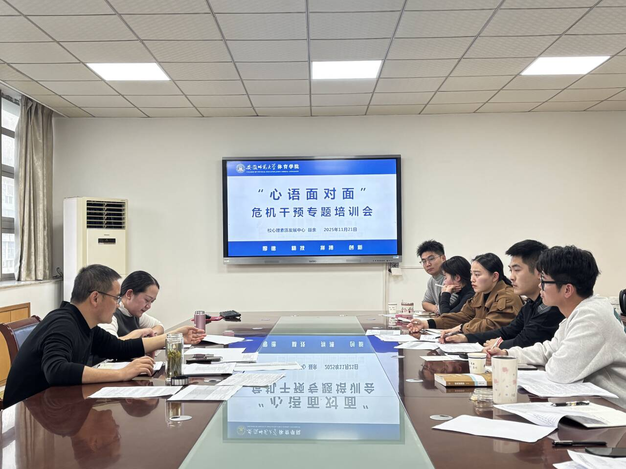 2025年11月21日,体育学院组织召开 “心语面对面” 学生心理危机干预工作专题培训会。学院党委副书记、全体辅导员参会,校心理素质发展中心聂余应邀作专题指导。