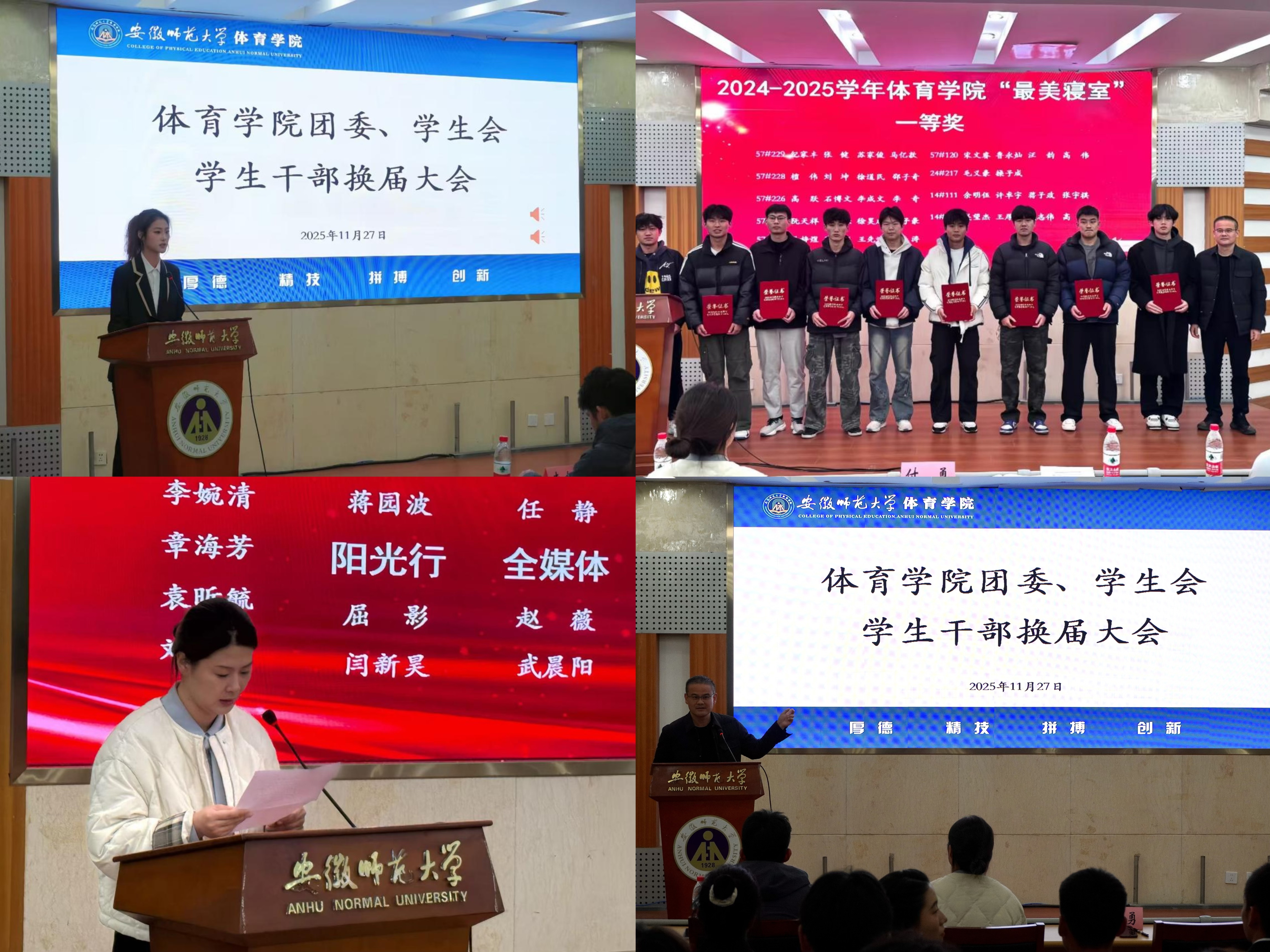 2025年11月27日,学院举行2025 - 2026学年团委、学生会学生干部换届大会。学院党委副书记付勇,团委书记朱克习,辅导员梅俊程、李恕谅,往届及本届团委学生会骨干成员,团委学生会新老成员以及各寝室学生代表参会。大会由2024级舞蹈表演专业学生邱桐主持。