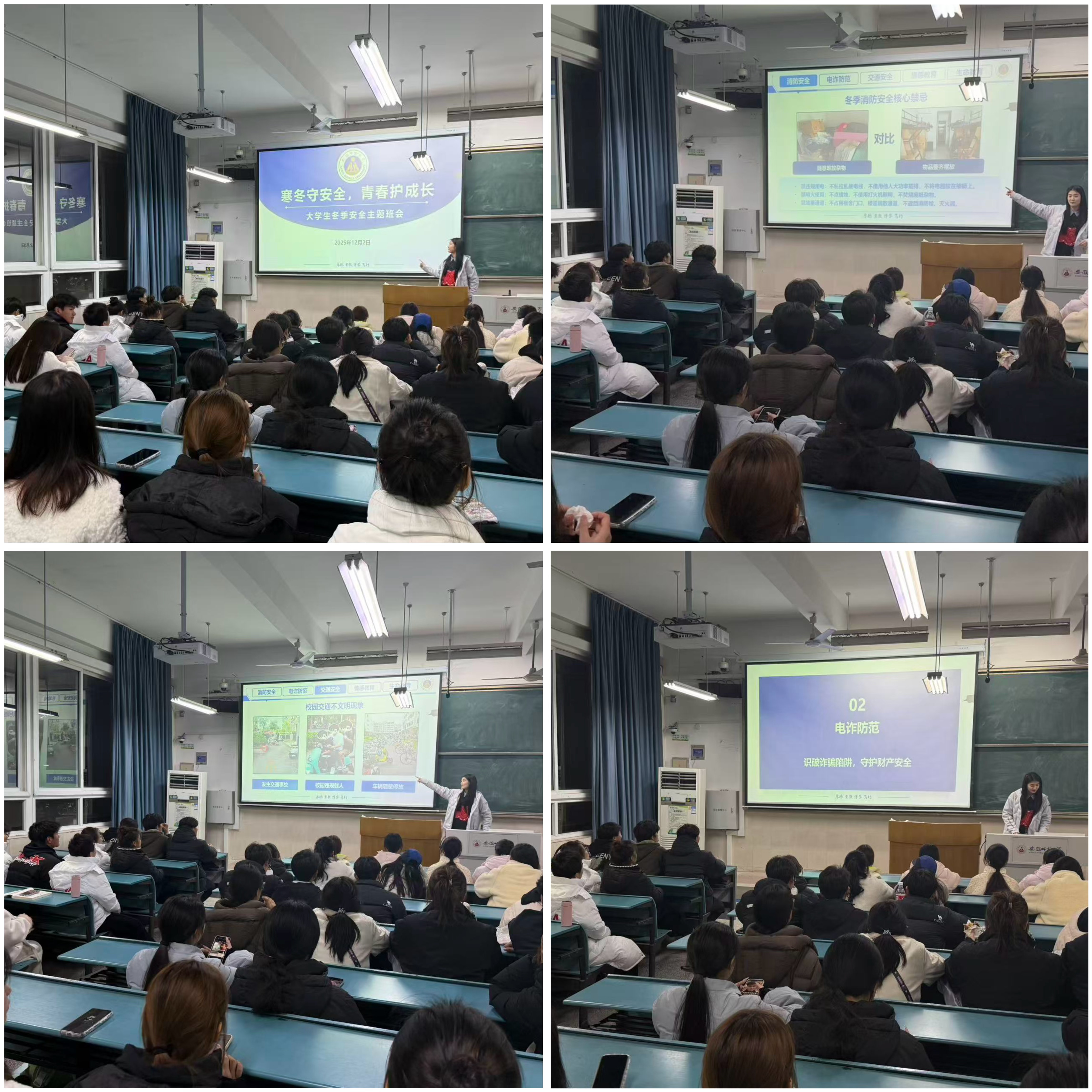 班会上,沈晴结合冬季气候特点以及学生日常生活场景,围绕消防安全、电诈防范、交通安全、情感教育、生活教育等5大核心领域展开深度讲解。特别是在消防安全板块,通过相关案例,重点解读宿舍电器使用禁令及消防应急知识等宿舍消防知识,提醒同学们时刻绷紧“安全弦”,从细节处杜绝安全隐患。此次班会,不仅全方位普及了冬季安全常识,更筑牢了同学们的思想防线,为创建平安和谐的校园环境奠定了坚实基础。