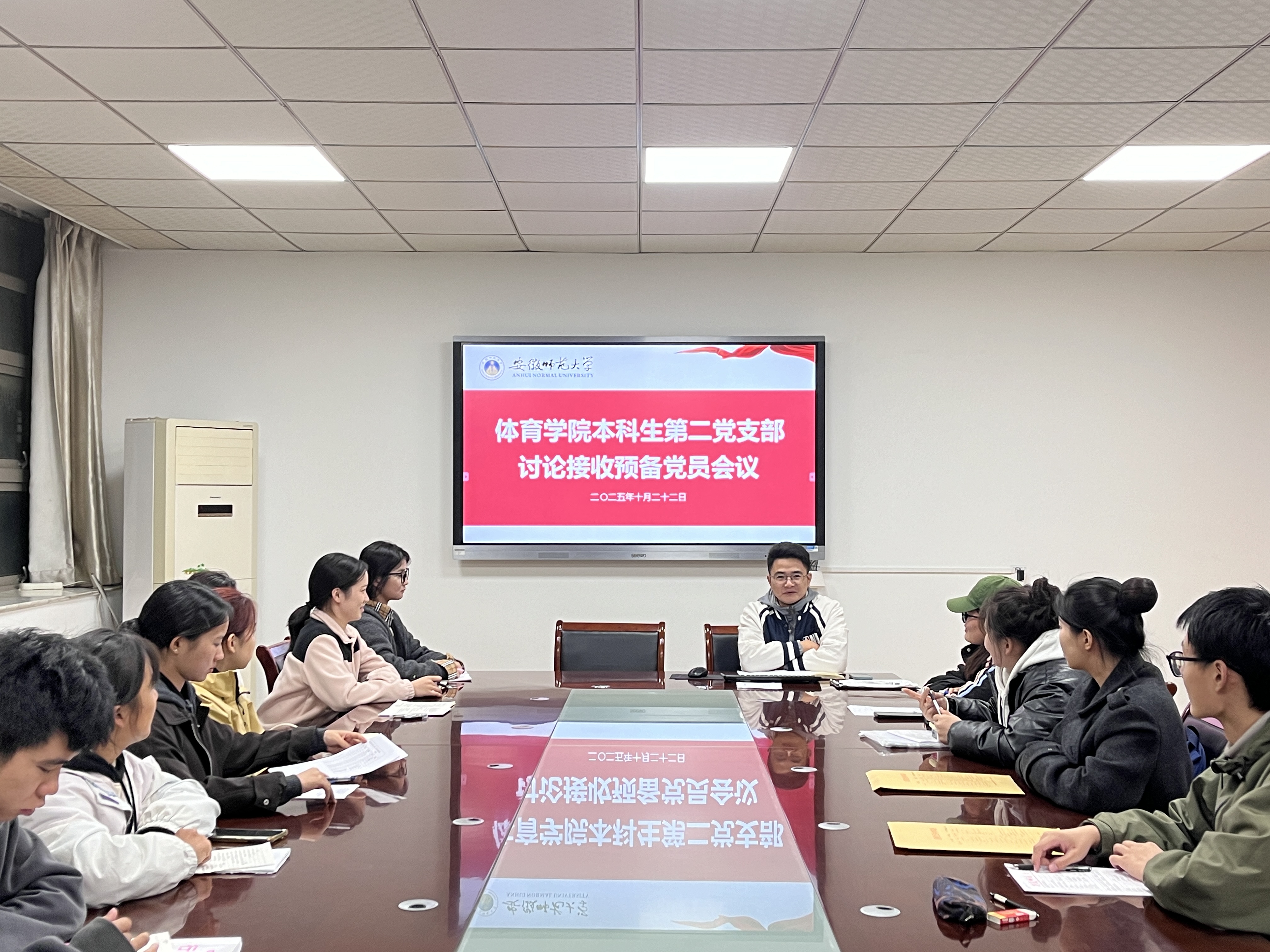 本网讯(体育学院本科生第二党支部)11月10日傍晚,体育学院本科生第二党支部在行政楼三楼会议室召开支部大会,院党委委员、副院长高升及支部全体党员参加大会,会议由支部书记夏健主持。