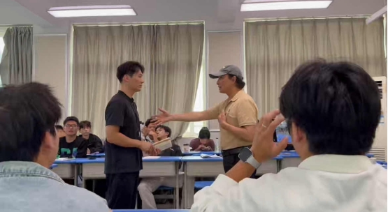 随后,吴本亮教授带领的实习生们观摩了附中实习生的“课前无生上课”展示。课堂中,实习同学准备充分、教学思路清晰、示范规范,展现了良好的教育素养与专业能力。吴本亮教授对附中学生饱满的精神面貌与积极认真的学习态度给予了高度评价,并指出,这种严谨踏实的实习氛围为师范生提供了优质的成长环境。