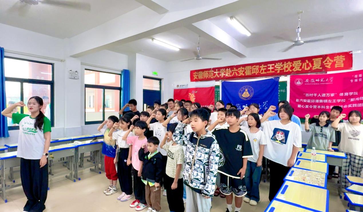 实践育人提升思想品德,弘扬青春挺膺担当精神。迎着晨曦,伴着微风,7月10日,安徽师范大学体育学院“阳光体育”爱心夏令营社会实践团队带着满腔的热情与实劲,来到六安霍邱左王学校,正式开启暑期社会实践生活。