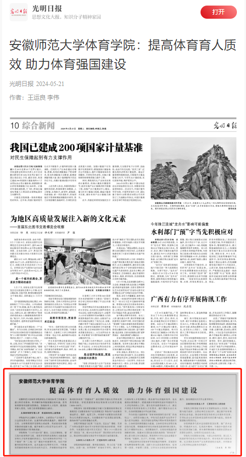 安徽师范大学体育学院深刻认识高校体育工作的重大意义和历史使命,科学解析体育强国建设的内涵,思考体育教育的创新发展路径,加强体育人才培养、提高体育育人质效,为助力体育强国建设立新功。