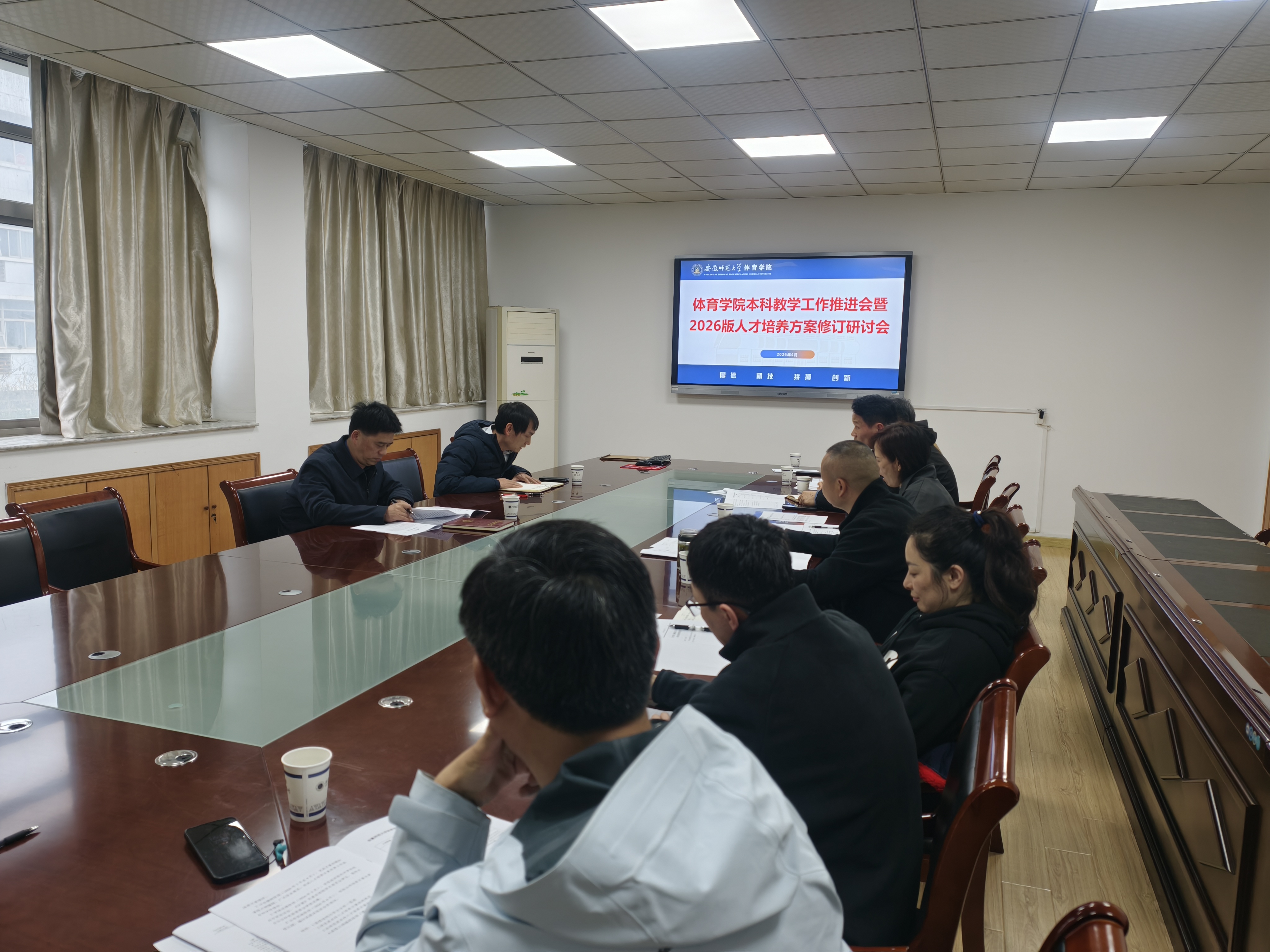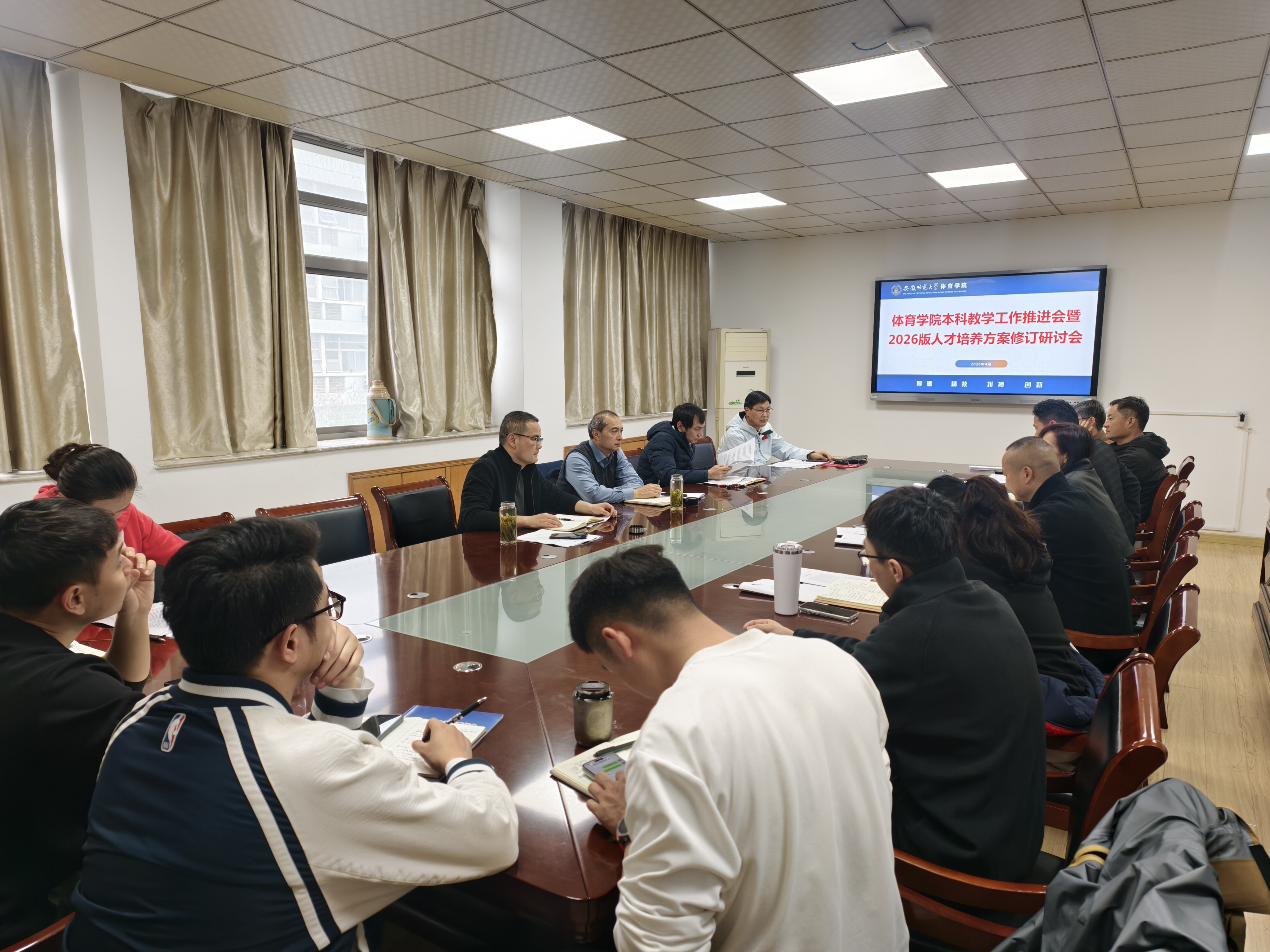 为深化本科教育教学改革、推进人才培养提质增效,4月3日,体育学院在行政楼三楼会议室召开本科教学工作推进会暨2026版人才培养方案修订研讨会。会议分两阶段,学院领导、专业负责人等参会,统筹部署教学工作、研讨方案修订事宜。