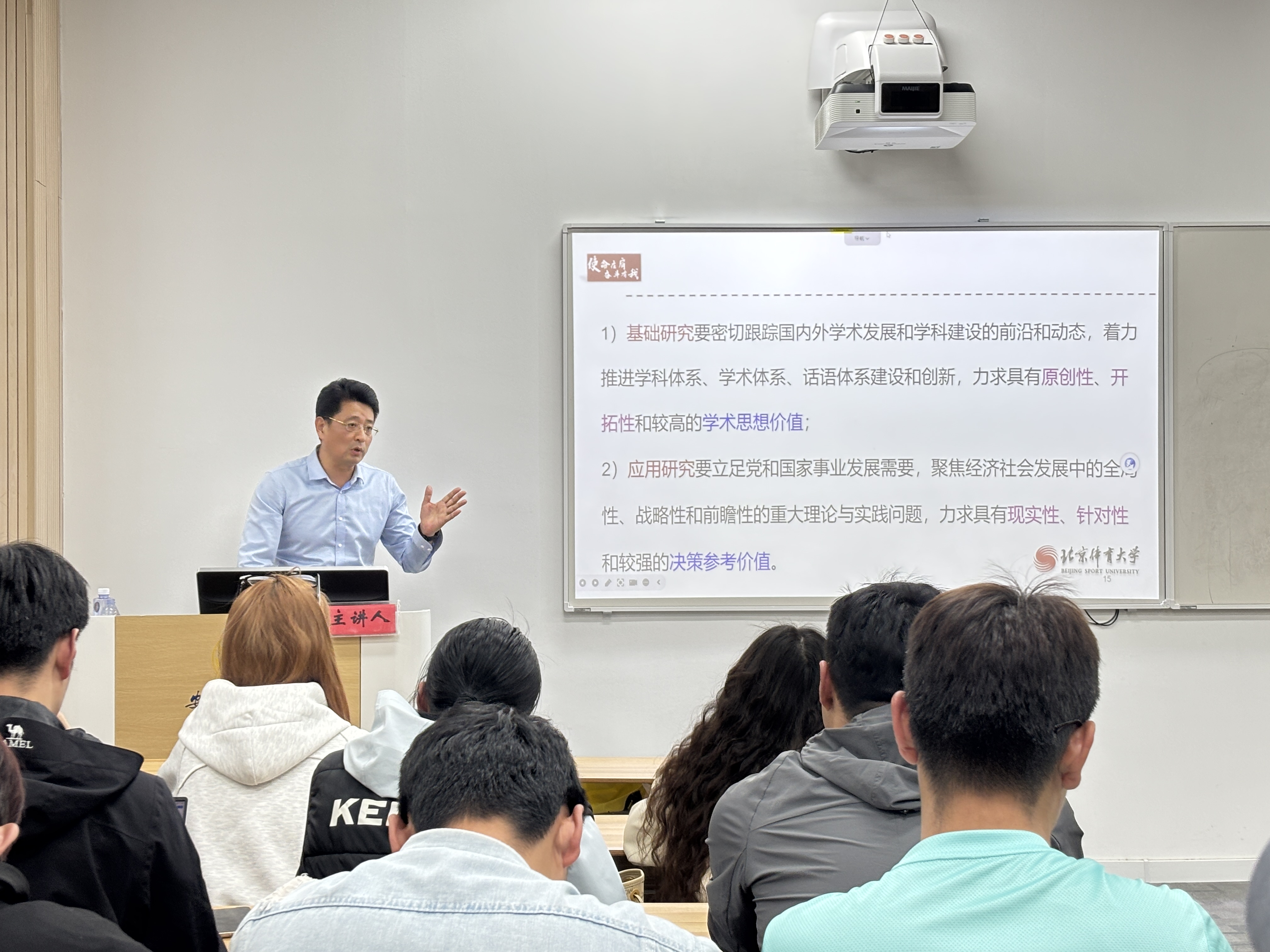 讲座中,张晓义教授从"科学、科学问题、科学研究"三个维度展开论述,系统阐释了体育科学研究的基本逻辑框架。