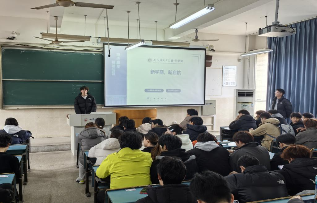为迎接新学期,欢迎新同学,2026年3月4日体育学院2024级体育教育专业2班在2010306召开了“新学期,新启航”主题班会。班会由辅导员任明俊主持,班级全体同学共同参加。