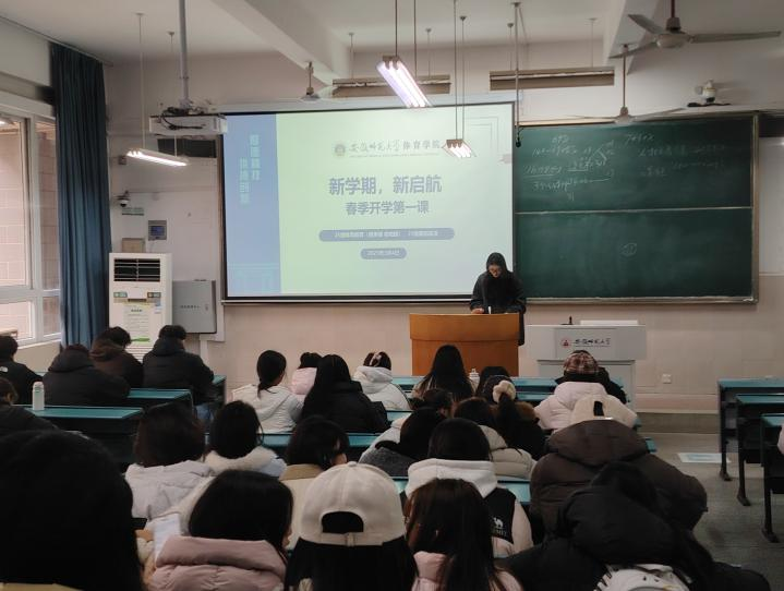 为强化学生新学期思想引领,筑牢校园安全与学业发展防线,3月4日下午,体育学院2025级体育教育(健美操、啦啦操)及舞蹈表演专业,在行知楼203101教室开展“新学期,新启航”春季开学第一课主题班会。班会由辅导员沈晴主持,全体同学参与。