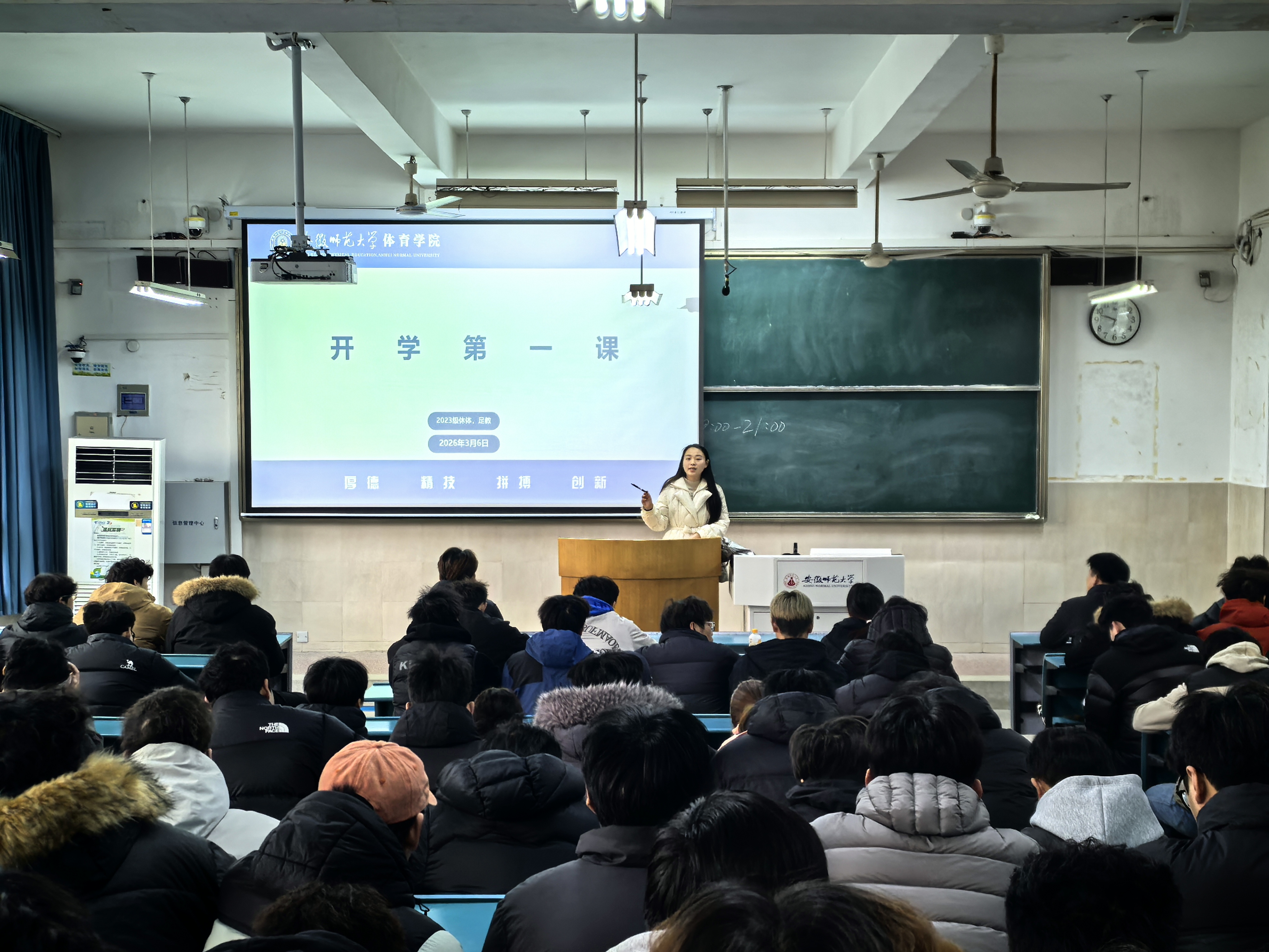 3月6日上午,辅导员裴思阳于2030101教室为足球教师试验班、休闲体育召开“开学第一课”主题班会,围绕安全规范、学风建设、学业规划、发展选择等内容展开,引导全体同学明确要求、调整状态、珍惜时光,以饱满热情开启新学期。
